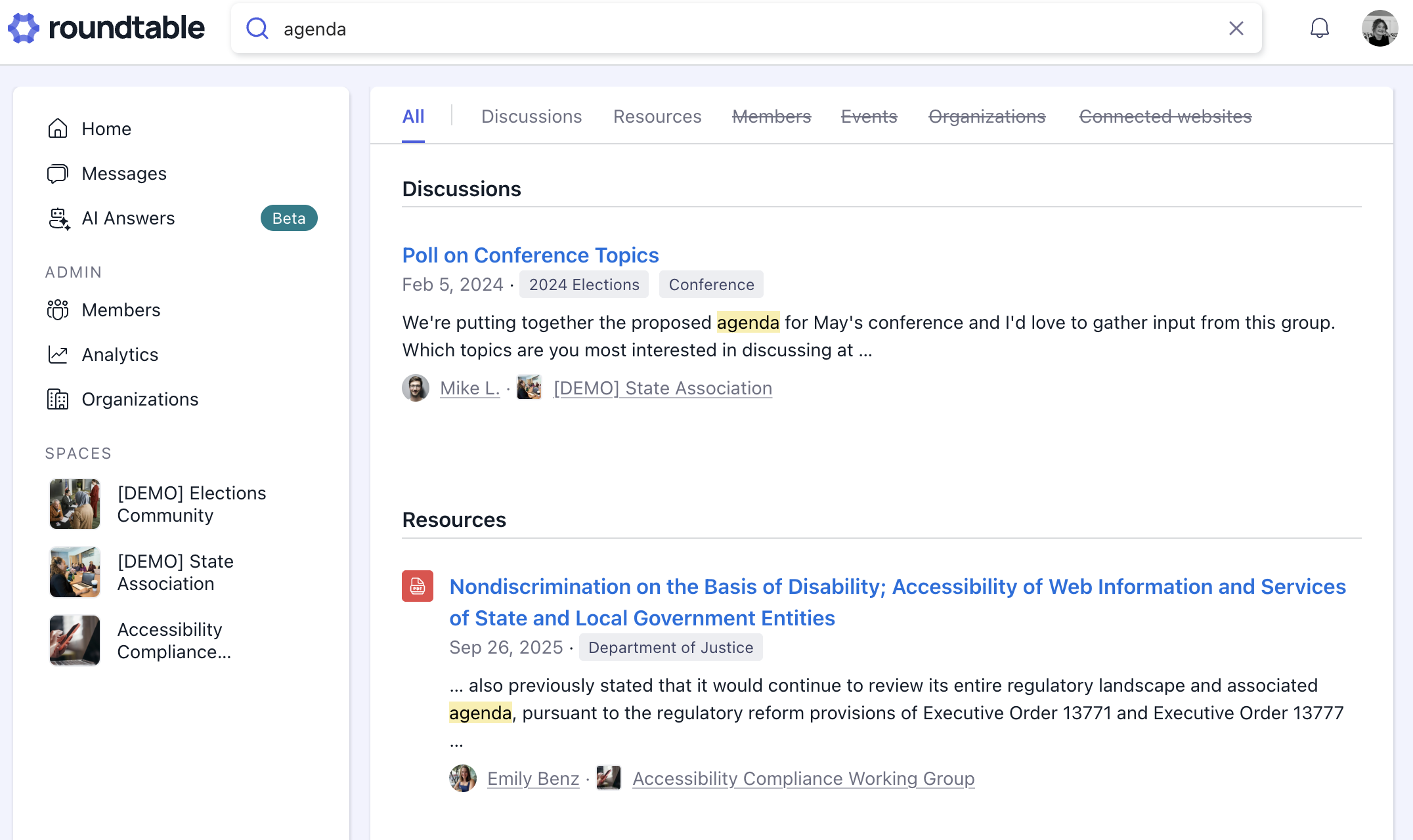 - The tool pulls data for its answers specifically from the Roundtable spaces you belong to.