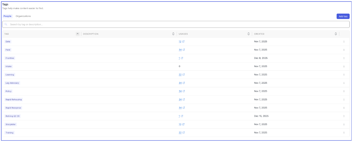 - Click Add tag.