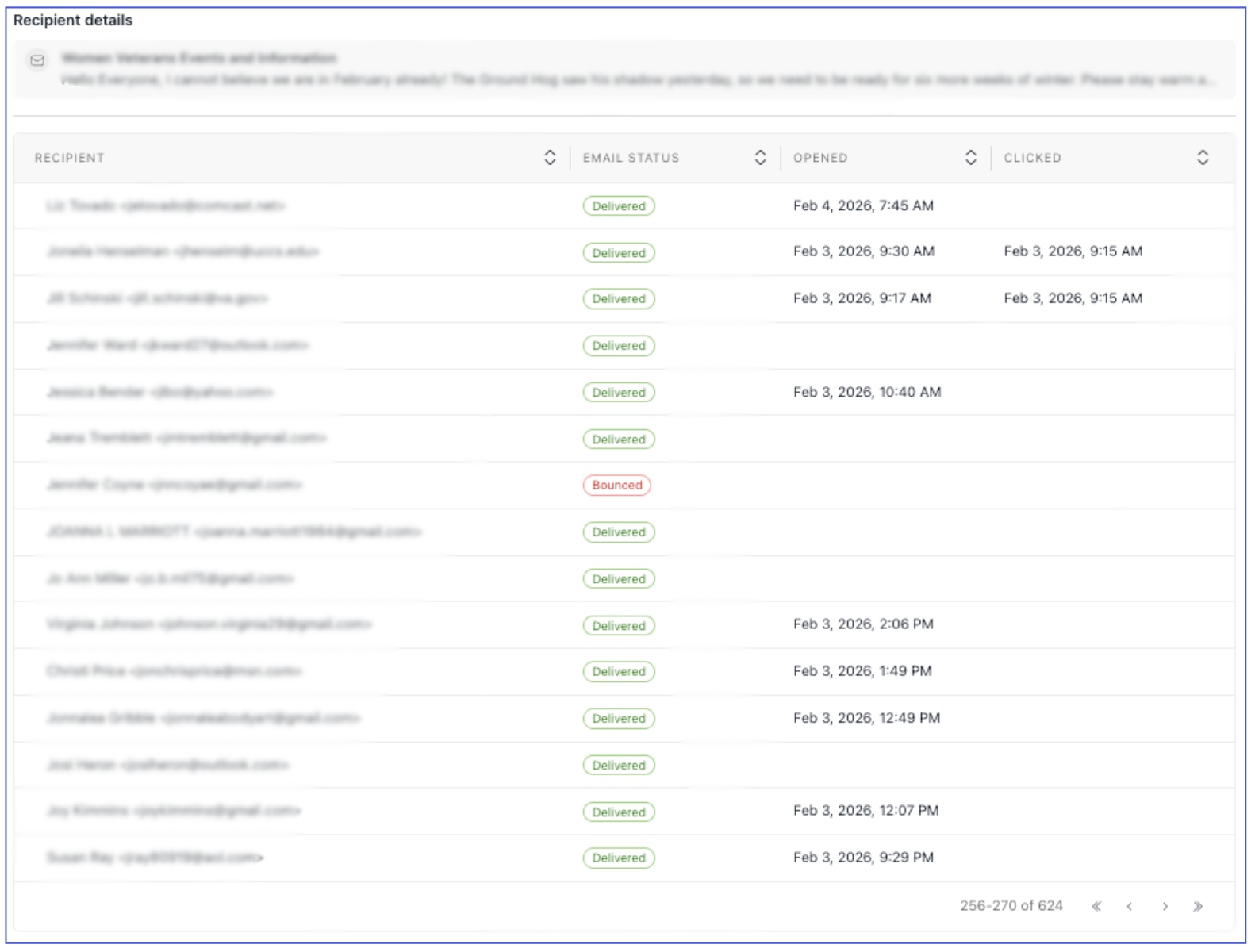 Click View recipient details to see engagement per recipient.
